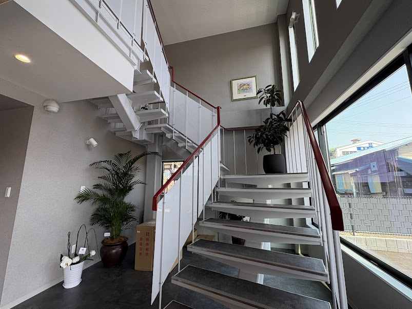 開放的で明るい雰囲気の階段を上がって2階へと向かいます。